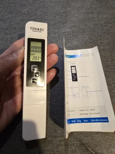 It seems to perfectly measure the quality of water hardness and also measures the temperature. It comes with a battery included, useful for areas with a lot of lime and for measuring without being fooled by some companies that specialize in this.